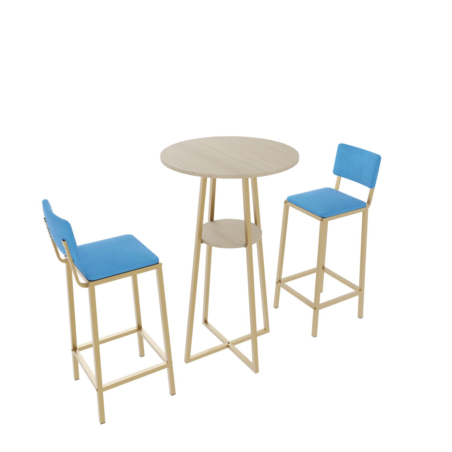 Bar table and chairs three piece set, gold frame, sponge made seat cushions and backrests Bar table and chairs three piece set, gold frame, sponge made seat cushions and backrests Bar table and chairs three piece set, gold frame, sponge made seat cushions and backrests
