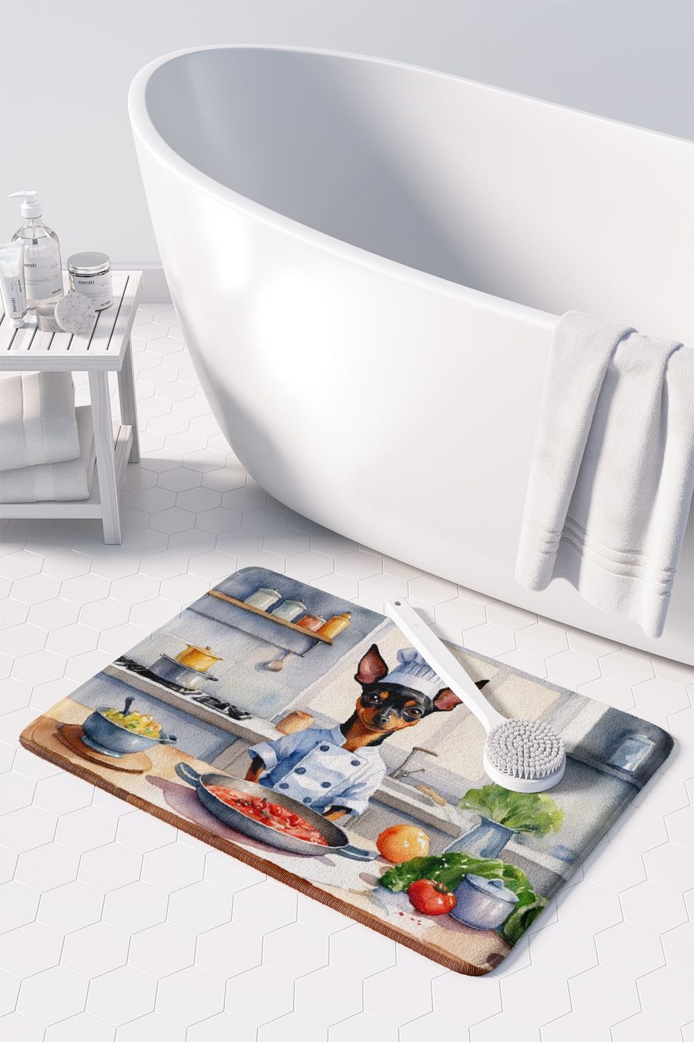 Miniature Pinscher The Chef Memory Foam Kitchen Mat Machine Washable Anti-Fatigue Mat Cushion Comfort Bath Mat or Kitchen Rug