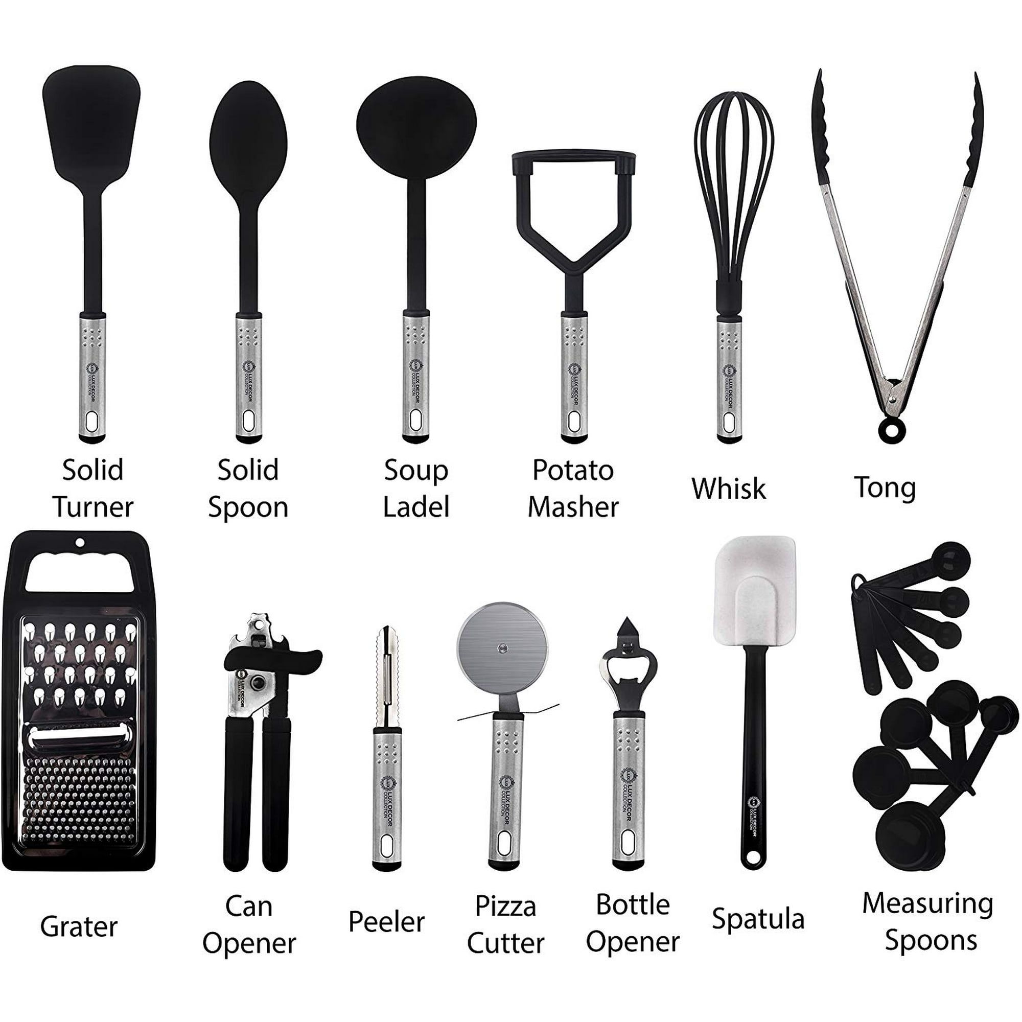 Kitchen Utensils Set- 23 Piece Cooking Utensils Set, Nylon Cookware Kitchen Accessories Set - Black