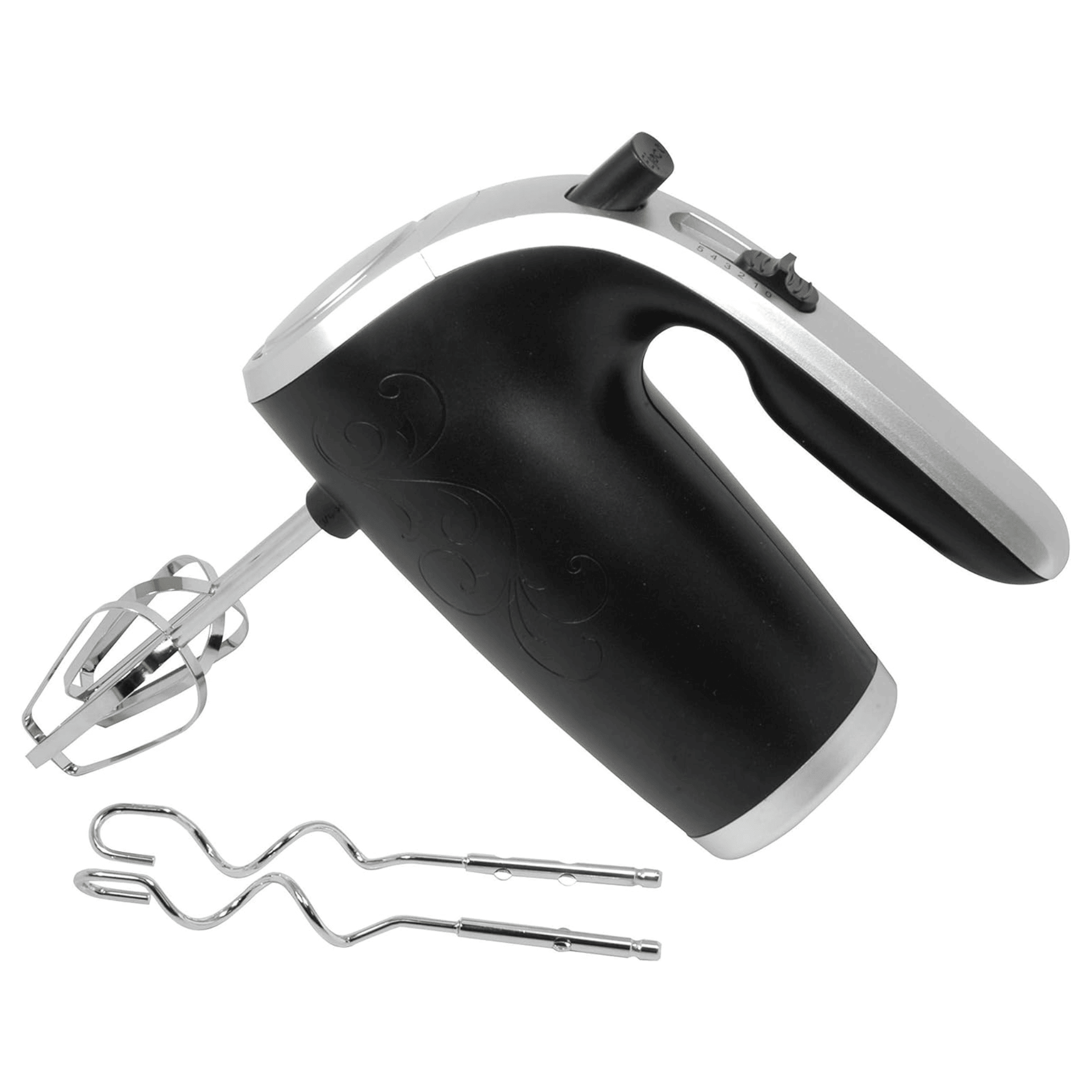 The Better Chef 150-watt hand mixer with stylish silver accents offers versatility with its 5-speed settings, allowing you to mix, blend, whip, and more with ease. Its powerful 150W motor is capable of handling most mixing tasks efficiently. Cleanup is simplified thanks to the stainless steel beaters and dough hooks, which are easy to clean. Additionally, the mixer is designed for convenience, featuring an ergonomic handle and thumb-switch speed controls that enable one-handed operation, enhancing usability in the kitchen.