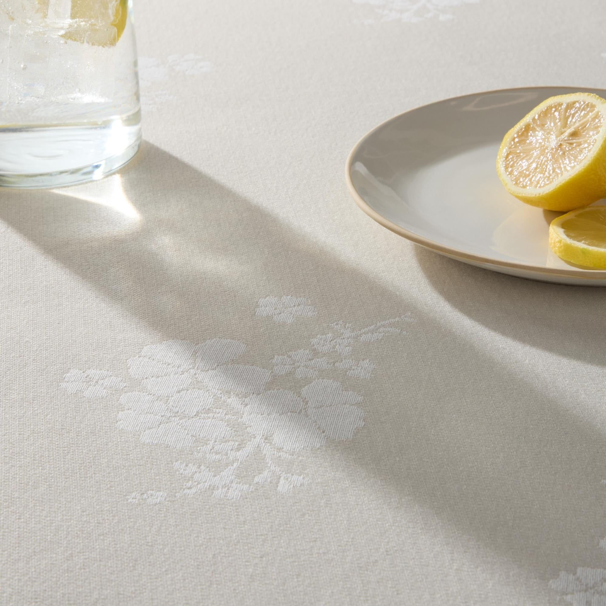Charming Design: Charming tablecloth with a neutral color and floral detailsEveryday Protection: Use it every day to protect your furniture from scratches and spillsIdeal Size: Rectangular tablecloth is ideal for hosting 6-8 guestsDurable Material: Made from a cotton/polyester blendEasy Care: Machine washable for convenience