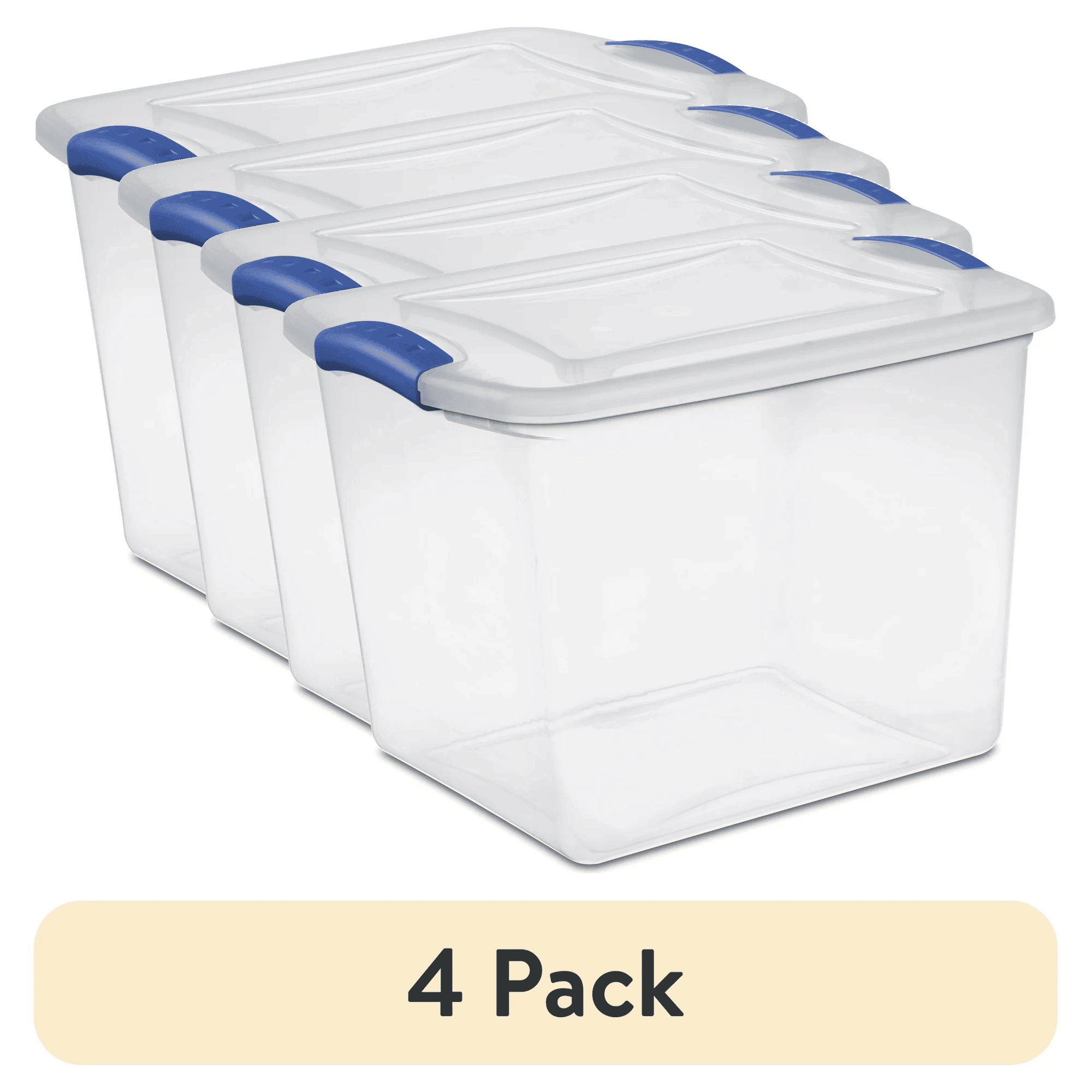 4 Pack 27 Quart Clear Plastic Storage Container with Latch Lid, Blue 4 Pack 27 Quart Clear Plastic Storage Container with Latch Lid, Blue 4 Pack 27 Quart Clear Plastic Storage Container with Latch Lid, Blue
